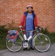Lisa and her trusty steed: a 1998 Dawes Galaxy, brand new at the time of the picture. Together they would cover over 1000 miles in 1998 and again in 1999.