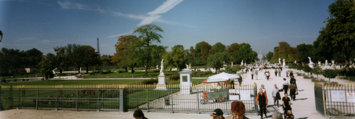 A panoramic view of the Tuilleries Gardens in Paris, taken during our weekend visit in September 1998.