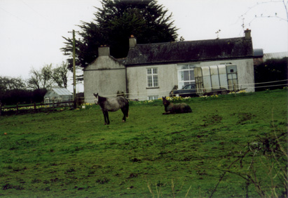 A farmhouse a little way along the road from Courtyard Cottages. Note the way the standing horse is facing...