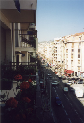 The view from the balcony of the Nice appartement, looking uphill (away from the sea).